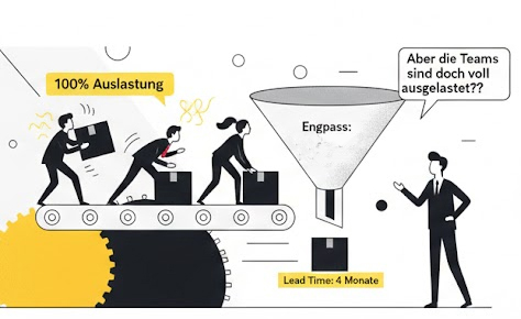 Wenn der Engpass z. B. nicht im Development sitzt, sondern in Requirements, QA, Security, Architektur oder im Deployment, dann verbessert jede lokale Optimierung zwar die Auslastung der Teams, aber nicht die Delivery Performance.